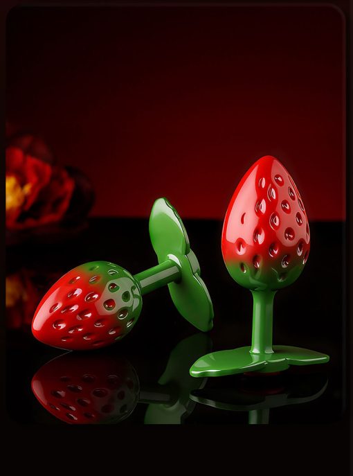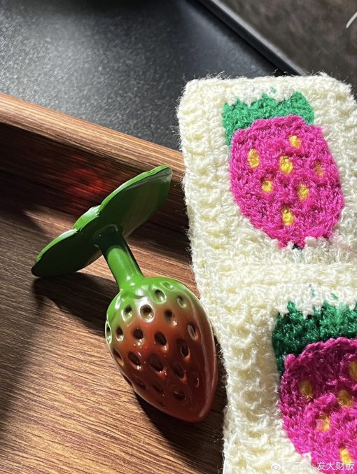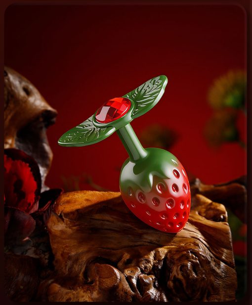 พื้นผิวโลหะแกะลายเม็ดสตรอว์เบอร์รี่แบบละเอียด ให้ผิวสัมผัสนูน–เว้าเสมือนผลไม้จริง เคลือบสีไล่เฉดแดง–เขียว เพิ่มมิติความหวาน สดใส แต่ยังคงความหรูหรา อัญมณีโทนแดงถูกฝังอย่างประณีต
