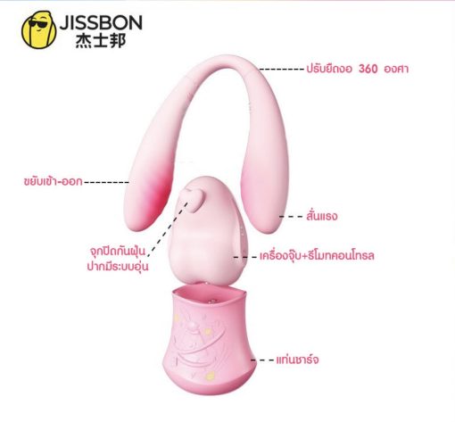 สัมผัสประสบการณ์ระดับพรีเมียมที่ผสานความน่ารักและเทคโนโลยีไว้อย่างลงตัวจาแบรนด์คุณภาพดี JISSBON ดีไซน์กระต่ายน่ารักแต่ทรงพลัง มาพร้อมระบบ 3in1 การทำงานที่หลากหลายรวมไว้ในเครื่องเดียว จุ๊บ+สั่น+ขยับเข้าออก+รีโมทคอโทรล ตัวเครื่องจะแยกเป็น 2 ชิ้น