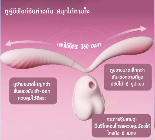 ดีไซน์หูกระต่ายแบบ Dual Control ควบคุมแยกอิสระ สั่น + ขยับเข้าออก พร้อมโครงสร้างยืดหยุ่นที่ดัดงอได้ 360° ปรับองศาเข้า–ออกได้ตามต้องการ เพื่อเข้ากับสรีระได้อย่างแม่นยำ มาพร้อมมอเตอร์ทรงพลังและโหมดปรับได้หลากหลาย สามารถปรับใช้ได้หลายแบบมาก ใช้คนเดียวหรือใช้กับคู่ได้เลย โครงสร้างซิลิโคนหนานุ่มแบบ 2 ชั้น ให้สัมผัสแน่นนุ่มและยืดหยุ่นได้ดี